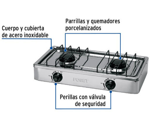 Ver masPARRILLA DE GAS DE SOBREPONER 2 QUEMADORES INOX FOSET