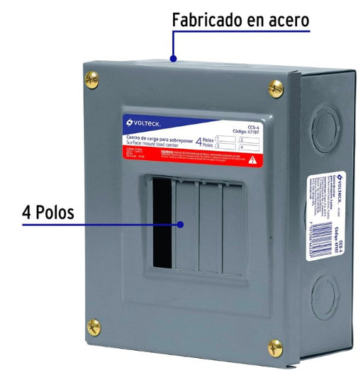 Ver masCENTRO DE CARGA DE SOBREPONER 4 POLOS VOLTECK