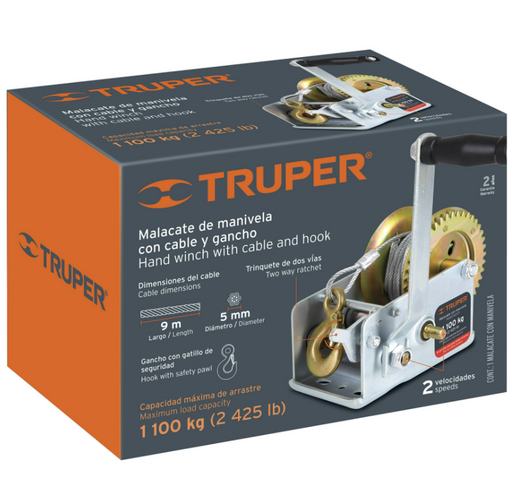 MALACATE DE MANIVELA CON CABLE DE 9 MTS, 1100 KG.