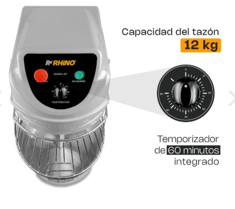 RHINOAcerca de este ProductoMarca: RhinoModelo: AMASA-10Capacidad del tazón: 10 litrosCapacidad de amasado: 4 kgMotor: 1 hpVoltaje: 105 - 127 V / 60 HzM...
