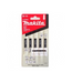 Diseñado para cortar madera, tableros, contrachapados, aglomerados y plásticos. Este tipo de hoja se monta en sierras de calar (o caladoras) y está pensada para cortes rectos y cortes en materiales relativamente delgados a moderados, conforme a su rango de aplicación.Especificaciones