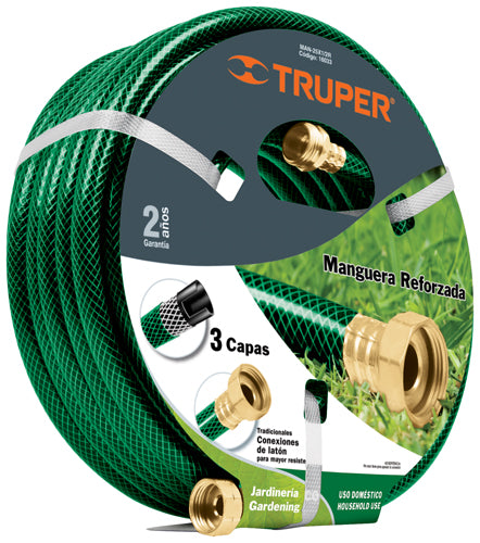 TRUPERAcerca de este ProductoMANGUERA PARA JARDIN 3/4", 25 M, REFORZADA, 3 CAPAS, CONEX. DE LATON, "CLASSIC"