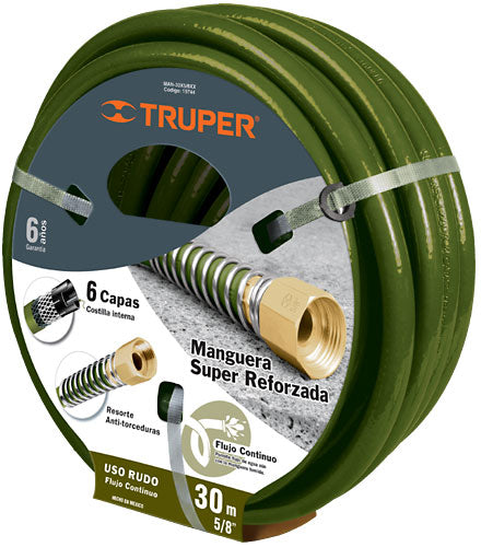 TRUPERAcerca de este ProductoMANGUERA PARA JARDIN 5/8", 30 M, REFORZADA, 6 CAPAS, CONEX. DE LATON. "EXPERT"