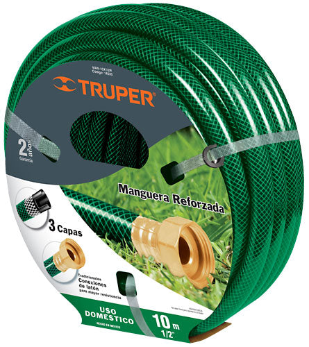 TRUPERAcerca de este ProductoMANGUERA PARA JARDIN 1/2", 10 M, REFORZADA, 3 CAPAS, CONEX. DE LATON, "CLASSIC"