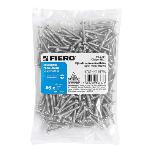 Ver todos los detallesPIJA PARA LAMINA #6, 1" BOLSA CON 200 PIEZAS