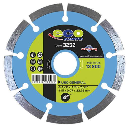 AUSTROMEXAcerca de este ProductoDISCO DE DIAMANTE 4-1/2" X 7/8" SEGMENTADO, PARA ESMERILADORA, ECO DIAMOND