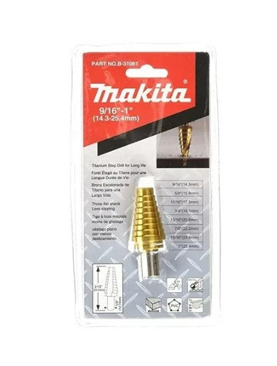 MAKITAAcerca de este ProductoBROCA ESCALONADA RECTA HSS-TI 9/16"-1" ZANCO 1/2"