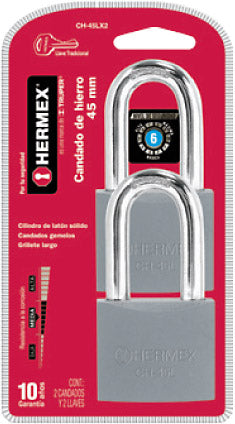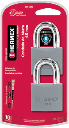 HERMEXAcerca de este ProductoCANDADOS GEMELOS DE HIERRO, G-LARGO, 45MM, 2 PZAS