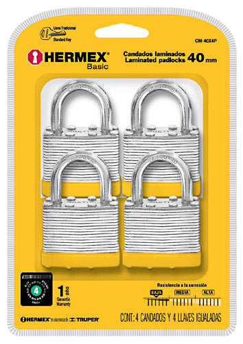 HERMEXAcerca de este ProductoCANDADOS LAMINADOS, 40MM, JUEGO DE 4 PZAS, S4