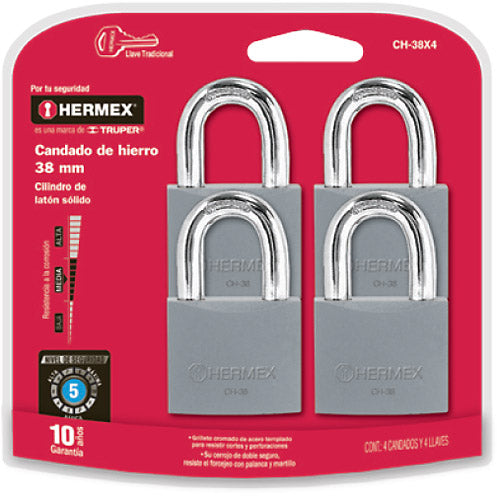 HERMEXAcerca de este ProductoCANDADOS DE HIERRO, 38MM, G-CORTO, JUEGO DE 4 PZAS, S3