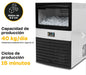 Capacidad de producción diaria: 40 kg (temperatura ambiente 10°C / Agua 10° C) y 39 kg (temperatura ambiente 20°C/ Agua 10°C)Capacidad de almacenamiento del depósito: 8 kg