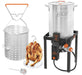 - Calienta el aceite rápido y mantiene temperatura estable para freír pavos grandes.