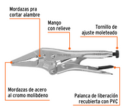Herramienta de sujeción manual robusta y versátil, diseñada para trabajos de mecánica automotriz, industrial y bricolaje. Su diseño de punta alargada y angosta facilita el acceso a zonas estrechas o de difícil acceso, permitiendo sujetar, apretar o mantener piezas firmemente mientras realizas reparaciones o ajustes.Especificaciones
